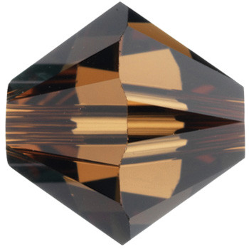 Fabulously glittery 4mm A-grade bicone glass crystal bead, smoked topaz brown colour. These A-grade glass crystal are new to Eureka! Beads - with multi facets, they produce a sparkle similar to brand name versions, but at a fraction of the price. Teams well with semi precious beads and pearls. Bulk pack contains approximately 100 pieces.