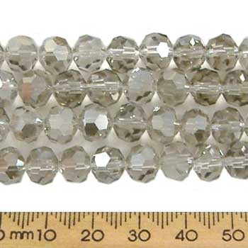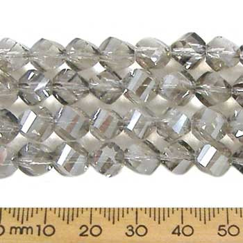 Fine cut strand of A-grade 6mm smoky quartz grey bicone (diamond shaped) glass crystal beads, approximately 32 beads per strand. The multi-faceted edge of these beads creates an amazing shine, perfect as a replacement bead for brand name versions.
